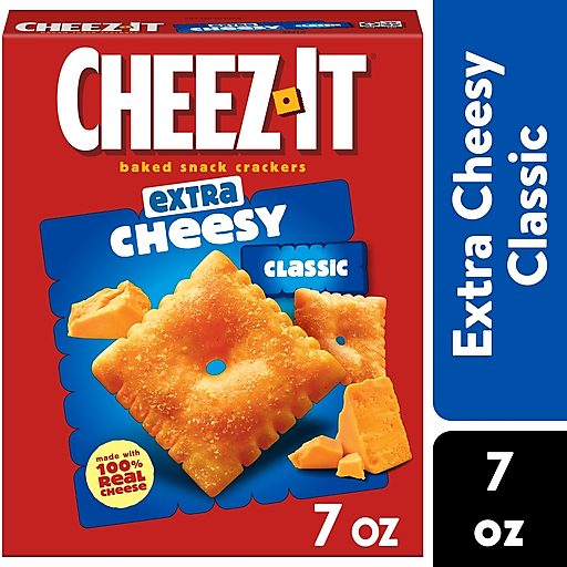Take snack time to the big leagues with our Cheez-It Extra Cheesy Baked Snack Crackers. Cheez-It Extra Cheesy Baked Snack Crackers are the real deal - made with 100% real cheese that's been carefully aged for an irresistible taste you know and love. Each cracker is made with even more toastiness, tastiness and bold cheese flavor that hits your taste buds with every delicious mouthful. A baked snack, Cheez-It crackers are perfect for game time, movie time, party spreads, late-night snacking, picnics, a BBQ, and more - the cheesy options are endless. Ideal for on the go too, Cheez-It crackers are great to bring along in a baggie on field trips, camping, hiking, trips to the park, picnics, outdoor concerts, festivals, play dates, everyday errands and more. Plus, these Cheez-It Baked Snack Crackers are Kosher Dairy. You'll love the one-of-a-kind flavor of real cheese in every tasty handful of Cheez-It Extra Cheesy Baked Snack Crackers.