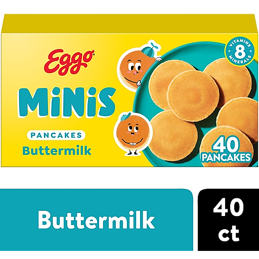 Wake up and greet the day with the feel-good taste of Eggo Minis frozen pancake bites. Convenient and easy to prepare, Eggo Minis pancakes bring warmth to busy mornings. Great for families and individuals, these delicious pancakes are made to enjoy as part of a stand-alone breakfast treat or with your favorite morning toppings like butter and syrup, jellies and preserves, and whipped cream; With no artificial colors or flavors, our Minis pancakes also provide a good source of 8 vitamins and minerals. Easily pop into the microwave or oven, heat, and enjoy. Drop them in a bag for easy on-the-go munching. Perfect for a quick late-night bite, dig in to Eggo Minis pancakes whenever you're feeling hungry. So delicious you just can't L'Eggo!