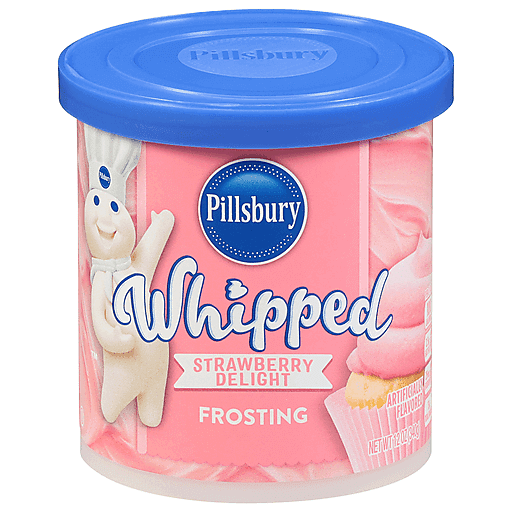 Sweeten up any bake with our berrylicious, ready-to-use Pillsbury Whipped Strawberry Delight Frosting. Soft and fluffy, our whipped strawberry frosting is easy to spread for ultimate decorating, layering, dipping and crumb coating potential. Our sweet and fruity strawberry whipped frosting is great for cupcakes, cakes, brownies and cookies. Elevate your baking experience and make sweet memories with an easy-to-use frosting that is ideal for any celebration, big or small. Our kosher whipped strawberry frosting doesn't weigh down your bake; it only adds to it. Put our pink gluten-free whipped frosting on sweet sugar cookies or a strawberry shortcake, and be wowed by its smooth and airy texture. Cover and refrigerate our 12-ounce tub of whipped strawberry delight frosting after opening for up to 2 weeks of frosting fun.