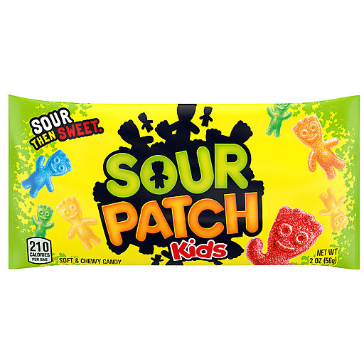 SOUR PATCH KIDS Original Soft & Chewy Candy packs all the classic flavor into a mischief-filled soft candy. SOUR PATCH KIDS chewy candies are a wholly delicious sweet treat that's SOUR. SWEET. GONE. Each bag contains sour candies in signature assorted fruit flavors that create a SOUR THEN SWEET treat to satisfy your taste buds. Add a little fun to your candy experience with the unique kid shapes that give these sour gummy snacks their name. A fat free food, this fruit flavored candy makes a great sour treat for multiple occasions. Keep SOUR PATCH KIDS on-hand for quick snacks or as party favors for Halloween, Valentine's Day or birthdays. This soft candy also makes a great movie theater candy to snack on during your favorite flick. This bagged candy is perfect for on-the-go or throwing in a lunchbox.